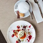 Gæsterne kan spise morgenmad på restauranten.